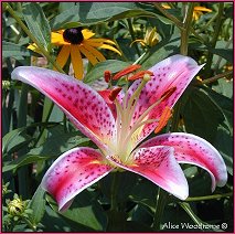 of the wonderful Sherherazade, which is on the bottom row. Next to it is, what else, another Stargazer, my favorite lily.
