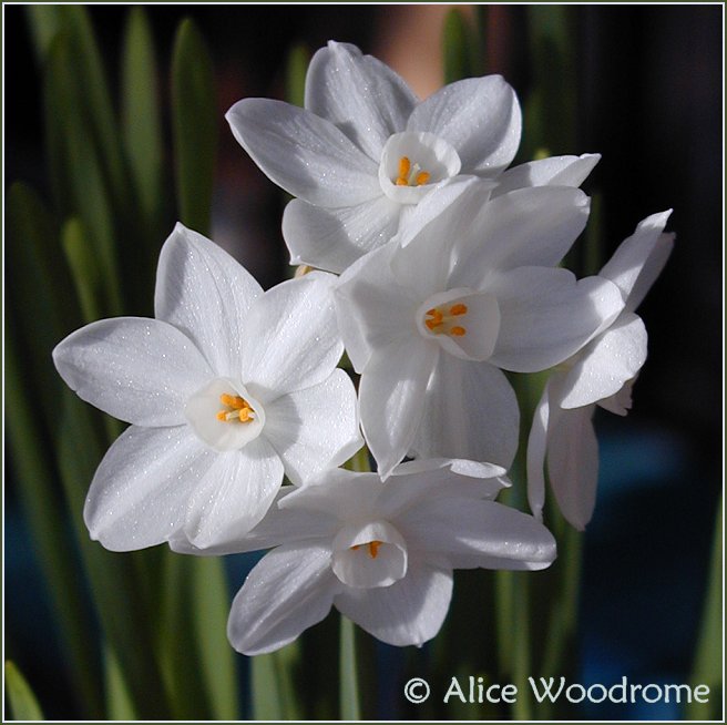 When it was cold outside and I couldn't get into the garden, I forced a few bulbs on the sunporch while I waited for spring. Below are tulips and paperwhites.