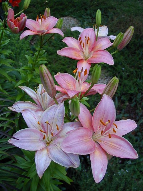 The Pink lilies are Wonderful Asiatics. The Red is called Red Velvet.