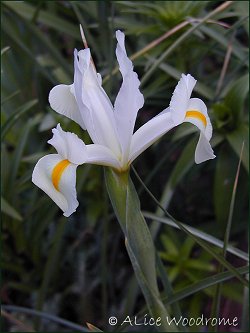 The blue columbine is the first to bloom. It was a new one last year. The irises are glorious, with many more to come. They are really just beginning. I've never had so many buds. I think they really liked being dug last fall. This one on the left was the first to bloom last year, but is in a less sunny spot and so the big purples beat open this year. It is one of my favorites. The white iris below is a Dutch Iris. They are grown from bulbs instead of rhizomes, like the bearded irises.